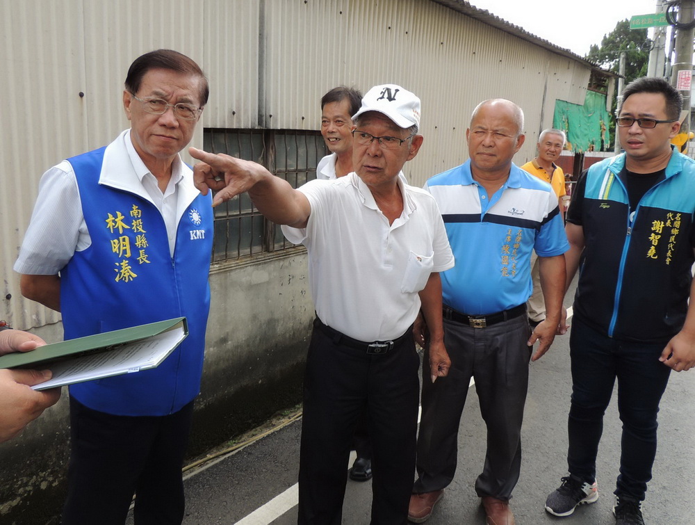 名間鄉崁腳、新厝及東湖村分屬投37、投31及投39之1三條鄉道的部分路段,因年久失修路面龜裂不平,並有部分排水溝牆崩塌,縣長林明溱獲悉後16日前往實地勘查,當場責成縣府工務處儘速測設發包改善。