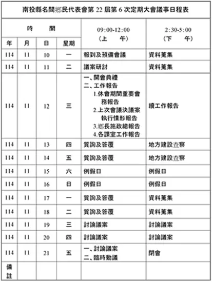 第22屆第6次定期大會議事日程表